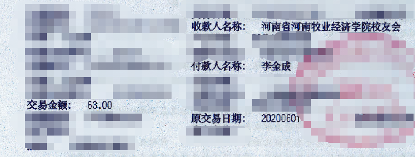 2020年“我爱母校”年度捐赠 | 中菲海外文化发展(河南)有限公司李金成(商务英语2008级2班)捐款63元