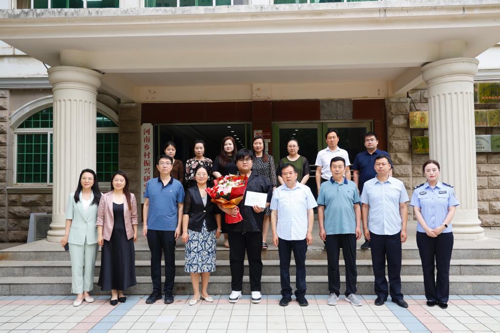 近日,沁阳市见义勇为协会会长李卫星、副会长杨旗洲一行四人来到m88登录入口官网,为国际教育学院2021级大数据技术(专)02班刘昊同学颁发了沁阳市见义勇为证书。