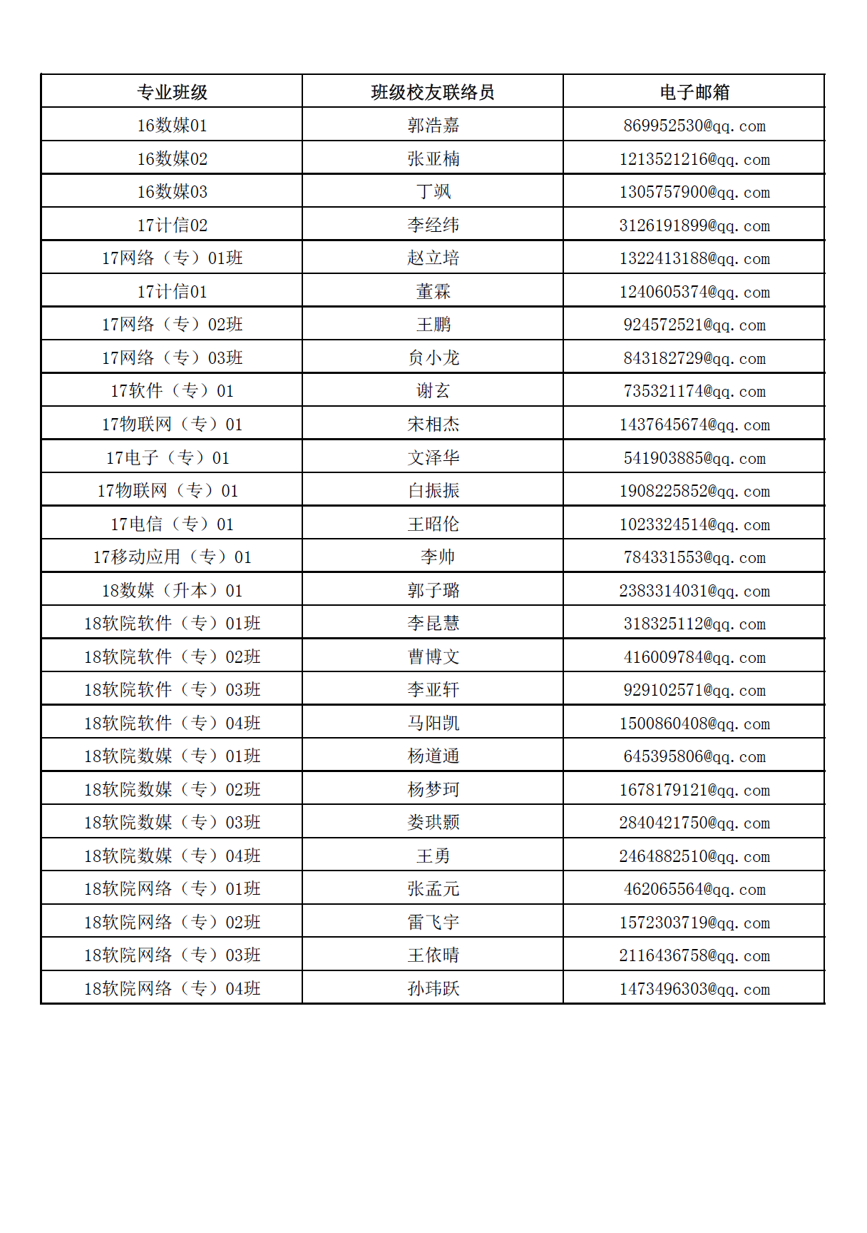 信息工程学院(软件学院)2010级-2017级班级校友联络员